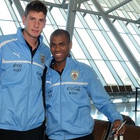 Felipe Avenatti y Diego Rolán, delanteros del Sub 20 de Uruguay.