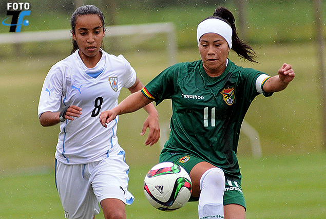 La uruguaya Sasha Larrea corre a la marca de la atacante boliviana.