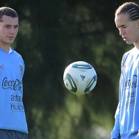 Sebastián Cristóforo y Diego Laxalt en el complejo.