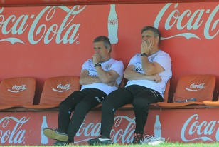 Oscar Tabárez y Celso Otero, supervisando el trabajo de los juveniles del Sub 20.