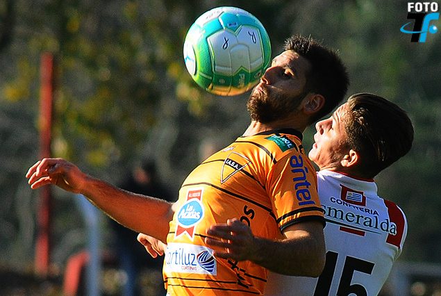 Bruno Giménez, pecho y control, frente a la marca de Diego Vicente en el Saroldi.