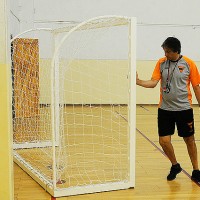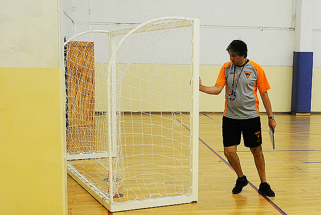 Alejandro Apud, el técnico de la IASA, el martes en el gimnasio de la Escuela Naval.