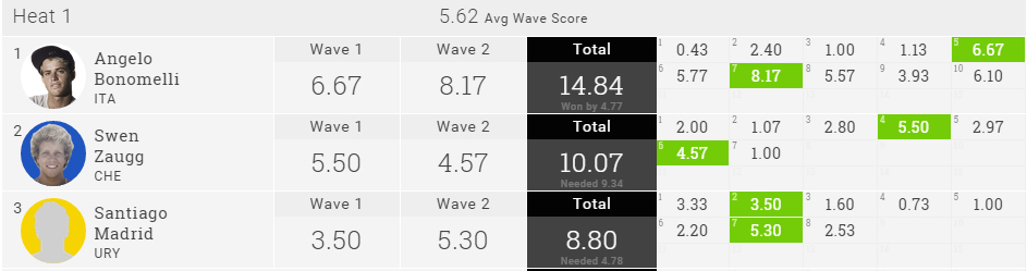 El evento progresó hasta la cuarta batería de ronda 1 masculina, y todo parece indicar que la jornada continuará con el evento femenino.