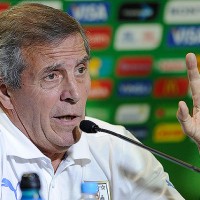 Oscar Washington Tabárez, seleccionador uruguayo, el sábado por la tarde, se presentó en conferencia en la sala de prensa del estadio Arena Fonte Nova de Bahía.