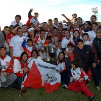 La Copa en manos de los jugadores a Tacuarembó. La fiesta del Norte se vistió de rojo.