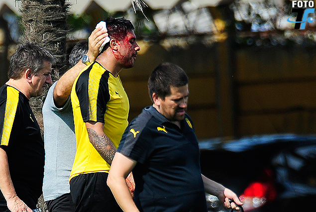 Exclusivo… Práctica accidentada en Los Aromos, Ramón Arias dio el gran susto, el zaguero con corte en la cabeza y sangrado