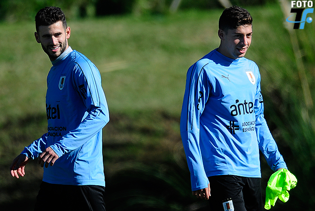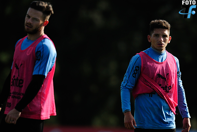 Selección: Lucas Torreira en el Complejo Celeste con Giovanni González y Giorgian De Arrascaeta en los veintidós jugadores