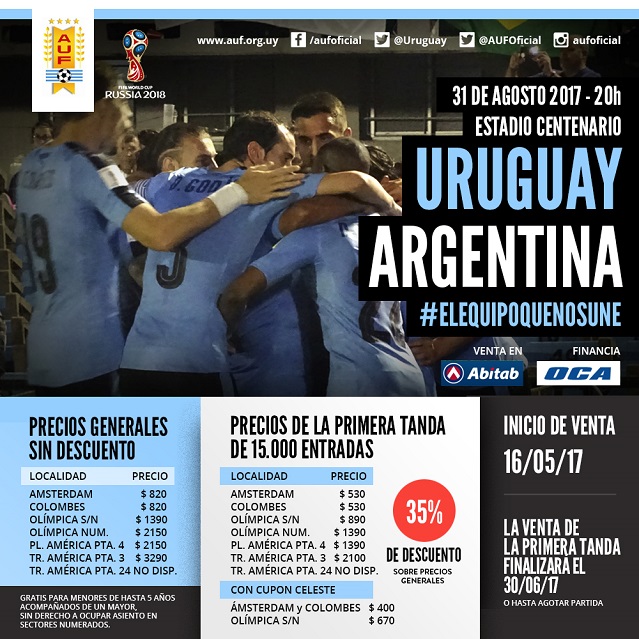 Uruguay-Argentina: este martes comienza la venta de entradas con un 35% de descuento