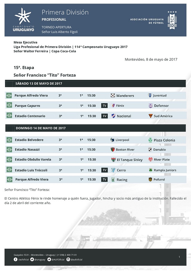El martes 16 de mayo la AUF realizará un lanzamiento del Torneo Intermedio