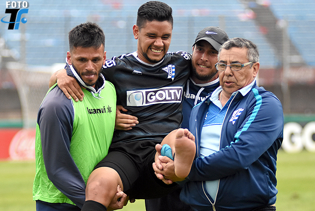 PABLO OLIVERA SENTIDO: El delantero de Torque, Pablo Olivera, no pudo seguir jugando por lesión. Salió con gestos de dolor y le pusieron una venda en la zona afectada.