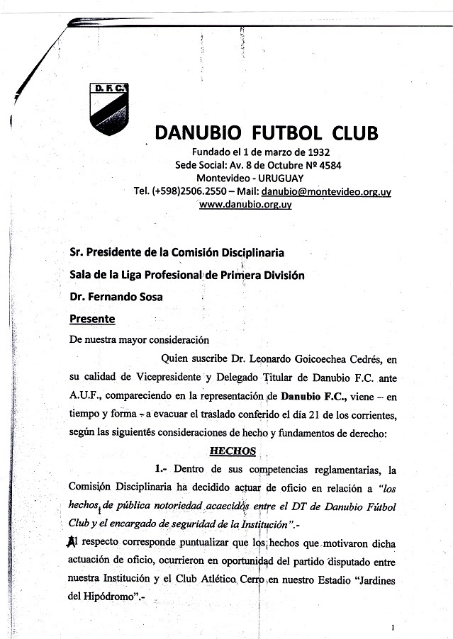 DANUBIO SIN SANCIÓN POR EL EPISODIO DEL “RATÓN”; DEFENSA DE GOICOECHEA HIZO ARCHIVAR EL CASO