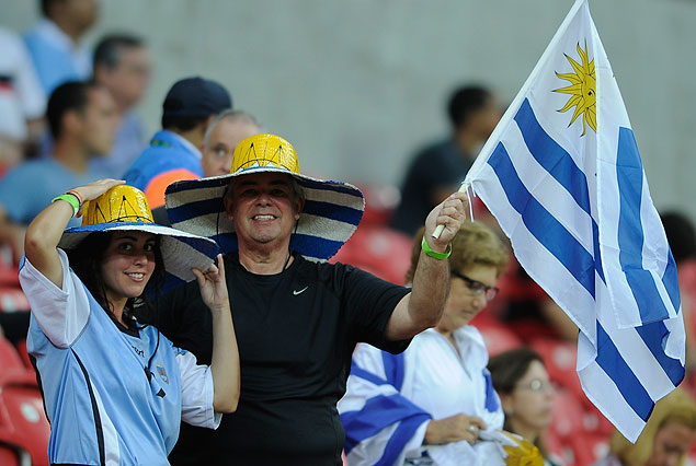 Los hinchas uruguayos invadieron el estadio Arena Pernambuco de Recife