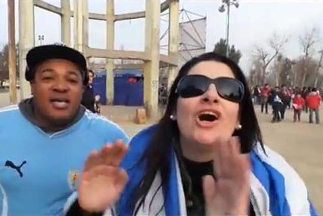 Hinchas uruguayos en la previa de Uruguay-Chile para Cámara Celeste.