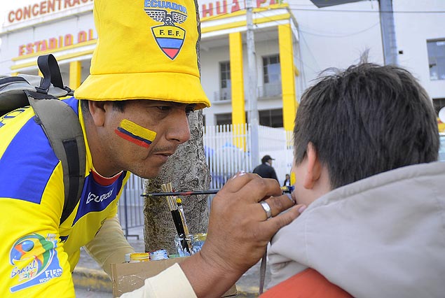 En las inmediaciones, en las calles adyacentes del Estadio Atahualpa ubicado en una zona El Batán, de residencias de buenas viviendas, comercios y hasta un shopping de gran porte, desde temprano comenzó la fiesta. La pintura de las caras de quienes se iban acercando, con los tradicionales colores de amarillo, rojo y azul de la bandera ecuatoriana.