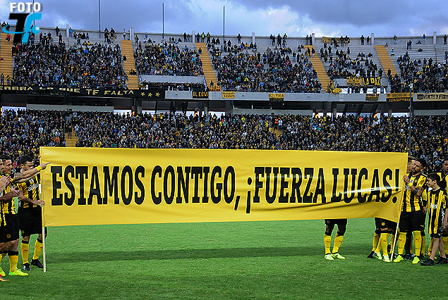 Argentino… Los jugadores de Peñarol en incondicional apoyo a su compañero Lucas Viatri, que se recupera de una delicada lesión ocular, ingresaron a la cancha portando una pancarta con la leyenda: “Estamos contigo, ¡Fuerza Lucas!”. Un cerrado aplauso bajó desde las cuatro tribunas en gesto de solidaridad con el delantero argentino.