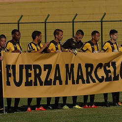 "Fuerza Marcelo", la pancarta que exhibieron los jugadores de Peñarol en apoyo a Marcelo Tabárez, futbolista de Danubio.