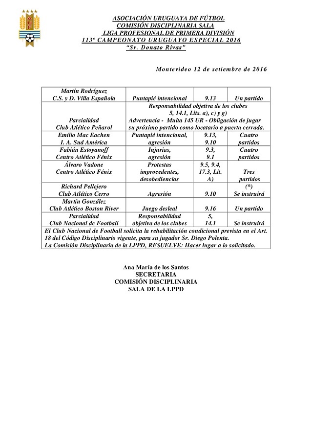 Todos los fallos dictados por la Comisión Disciplinaria tras la tercera fecha del Uruguayo