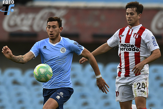 Yonatthan Rak (Torque) y Pablo González (River Plate) disputan la pelota en el Estadio Centenario.