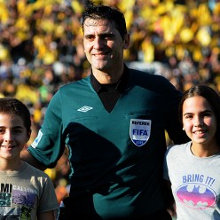 El árbitro Darío Ubríaco entró a la cancha con sus hijos.