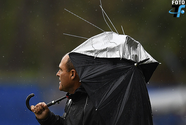 Paraguas… Gastón Machado, enojado golpeó su paraguas contra el piso tras un supuesto penal no sancionado en contra de Damián Malrechauffe. Fue apenas iniciado el primer tiempo, por supuesto el mismo se rompió y el entrenador se quedó con medio paraguas que lo protegió poco y nada de la lluvia. Una imagen dice más que mil palabras…
