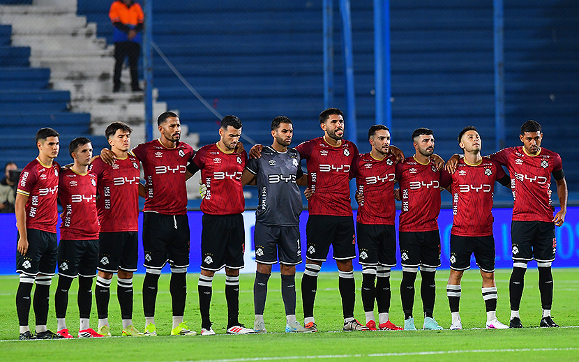 Los jugadores de Wanderers forman abrazados en el medio de la cancha durante el minuto de silencio por la muerte de Mauricio Nanni.