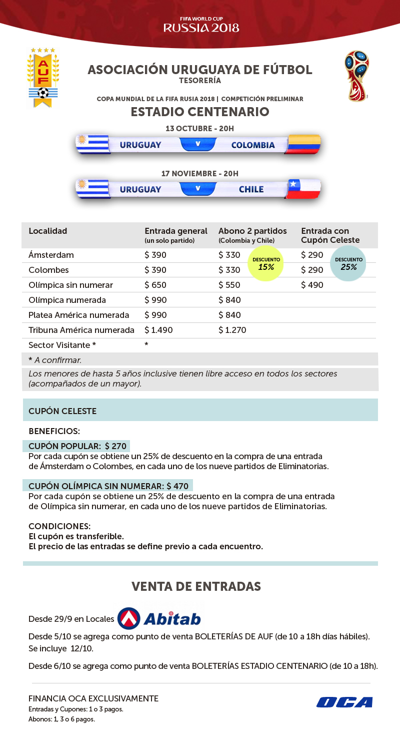 Uruguay-Colombia: hay 1.473 entradas vendidas para el partido del martes 13 a la hora 20