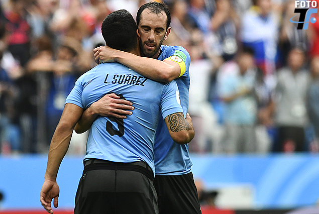 El abrazo de Luis Suárez y Diego Godin en el final de tristeza.