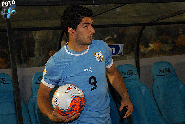 Luis Suárez con la pelota en la noche inolvidable que le anotó 4 goles a Chile.