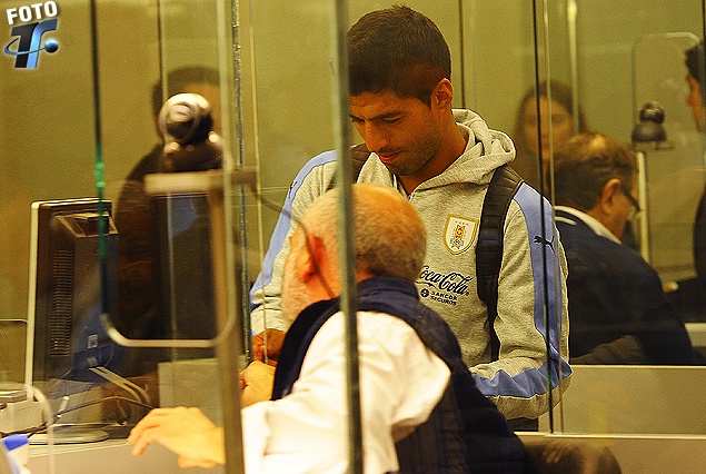 Luis Suárez aparece en el registro exclusivo de tenfield.com -único medio, junto los compañeros de VTV y "Cámara celeste" que viajaron en el charter"charter"- demorando aún más el trámite migratorio al firmar varios autógrafos solicitados por el funcionario de migración, a lo que el mejor delantero del mundo accedió con gentileza.