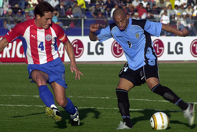Darío Silva autor de dos goles ante los guaraníes en el triunfo 3:1 de cuartos de final en Perú. Fue el 18 de julio del 2004. Anotó dos.