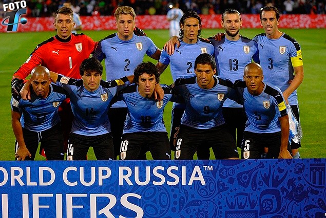 La formación de Uruguay con diez jugadores. Ausente Jorge Fucile.