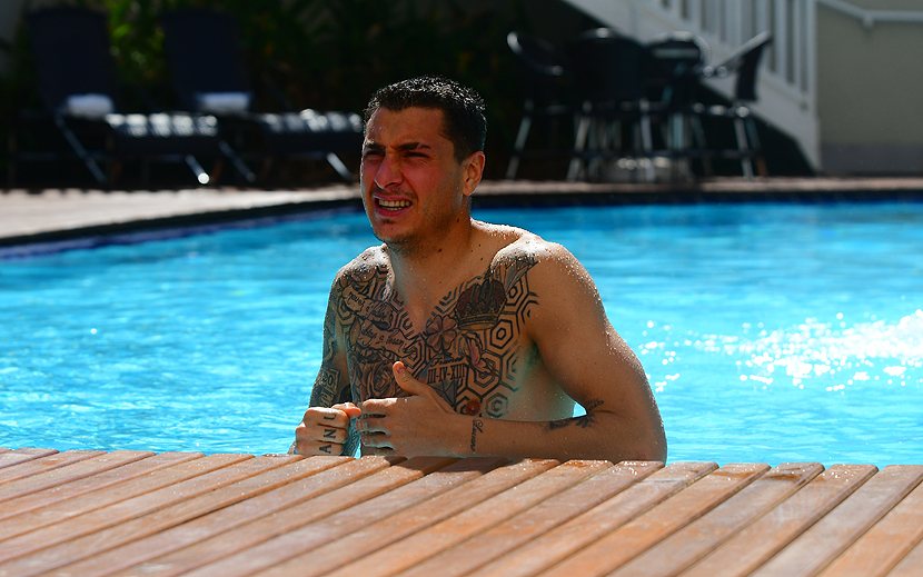 Josema Giménez, en la pisicina del Hotel Deville de Cuiabá.