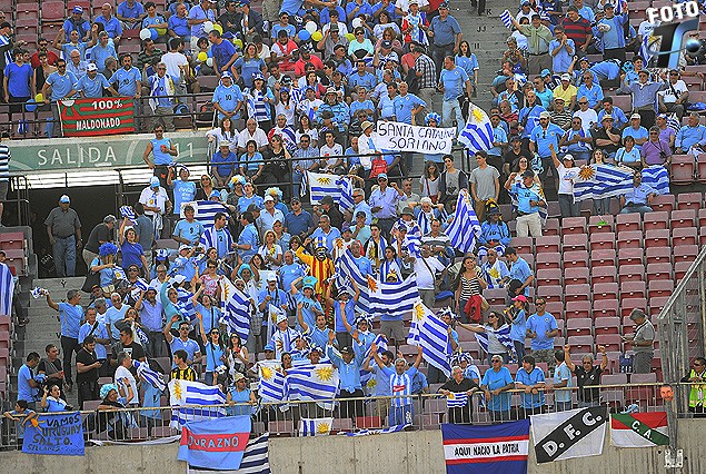 URUGUAYOS: A las 18.10 comenzaron a ingresar los uruguayos. En total van a ser 1.500 los aficionados compatriotas que van a observar el partido desde la tribuna. Quienes observen la televisión en nuestro país, los encontrarán a la izquierda de su pantalla, en el ángulo de las tribunas cabecera con la oficial, mismo en el córner del arco de la tribuna donde se encuentra el tablero electrónico. Prácticamente todos los que han ingresado hasta el momento, aproximadamente un tercio de la totalidad, lucen con camisetas celestes y banderas uruguayas en su mayoría.