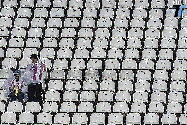 Tenfield.com instalado en la tribuna de prensa del estadio Defensores del Chaco. No se habilitó aún el ingreso de público a las tribunas. Por eso están vacías. El escenario presenta un aspecto extraño y raro para quienes hemos concurrido aquí ocasionalmente a cubrir eventos de carácter internacional con la presencia de equipos de nuestro país. Cielo gris y encapotado, llovizna permanente, cierta niebla que impide ver detrás de las tribunas los edificios del centro de Asunción. Afuera, cuando ingresábamos recorriendo las calles adyacentes el panorama que se nos presentó también fue imposible reconocer para nosotros. ¡Vendían pilot para cubrirse de la lluvia!