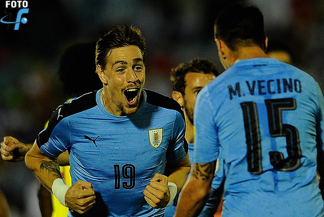 Sebastián Coates comparte el grito de gol con Matías Vecino.