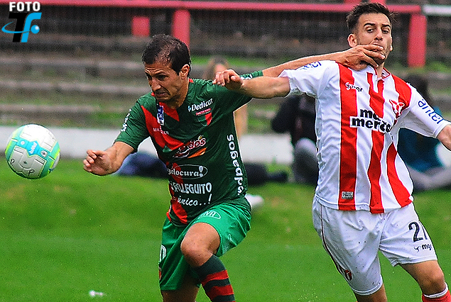 Pablo Alvarez (Boston River) maniobra con la pelota ante la marca de Facundo Bomé.