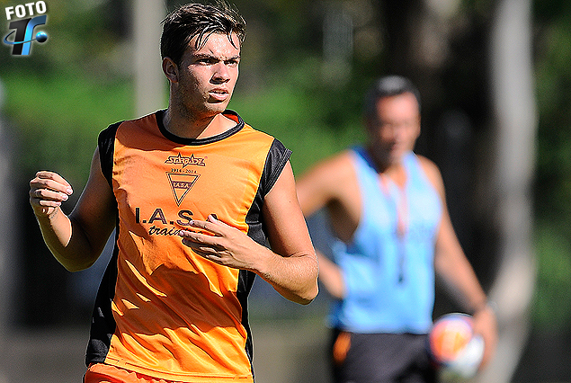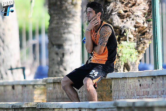 Gastón Díaz en el equipo titular. Vivaldo observa a lo lejos.