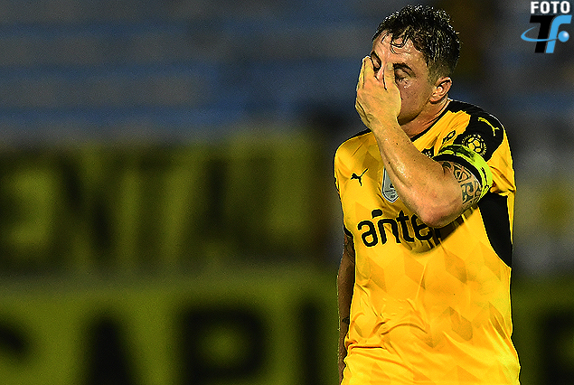 Cristian Rodríguez se tapa la cara, no quiere ver... Peñarol perdió el invicto y la punta del Apertura.