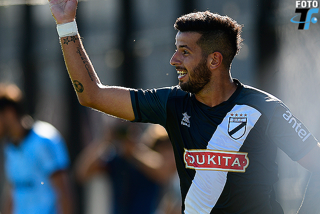 Pablo Ceppelini en la alegría de Danubio, de cabeza al gol en el Parque Viera.
