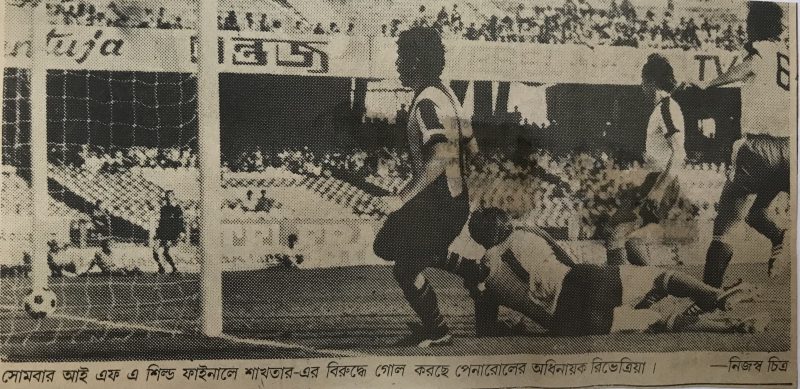 Recorte del diario hindú. Foto del momento previo a la definición del partido.